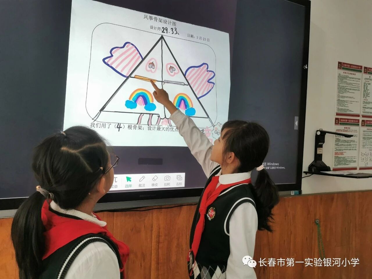 In science class, children study the structure of kite frames and design kite structures — this is where the kite dream begins.