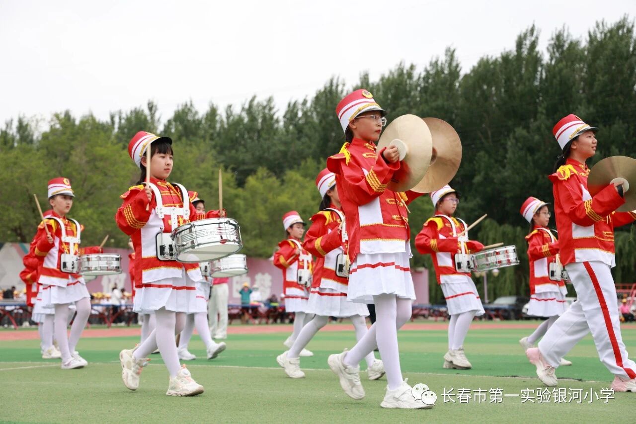The team flags flutter with lofty aspirations, and the sounds of drums and bugles accompany growth. The school drum and bugle corps plays with classic elegance, showcasing the spirit of young pioneers in the new era. The blaring bugles express their vision for a bright future of the motherland.