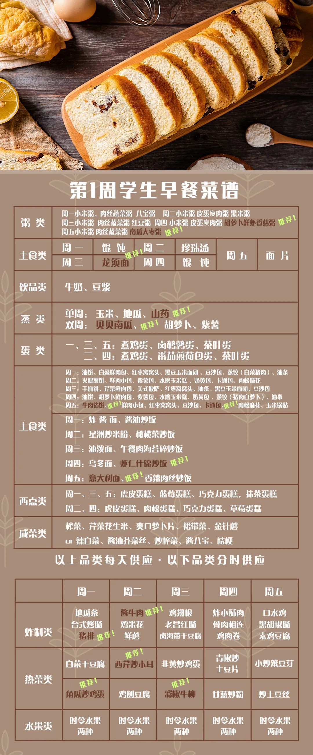 新学期学生早餐方案