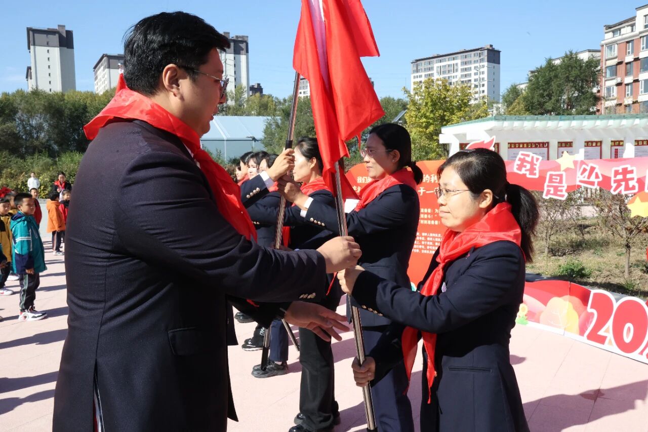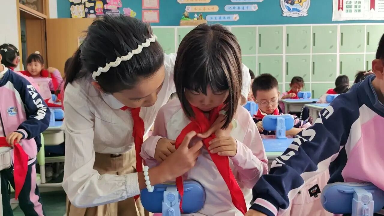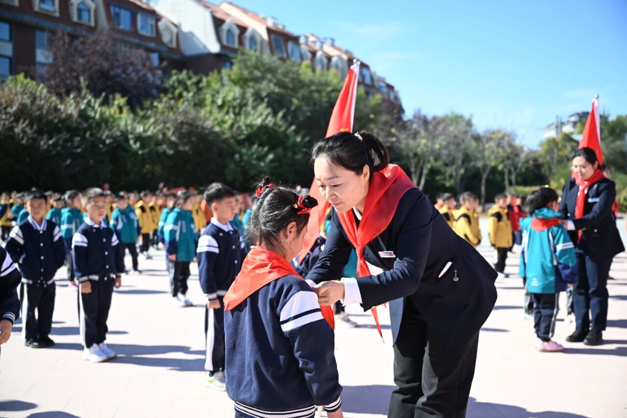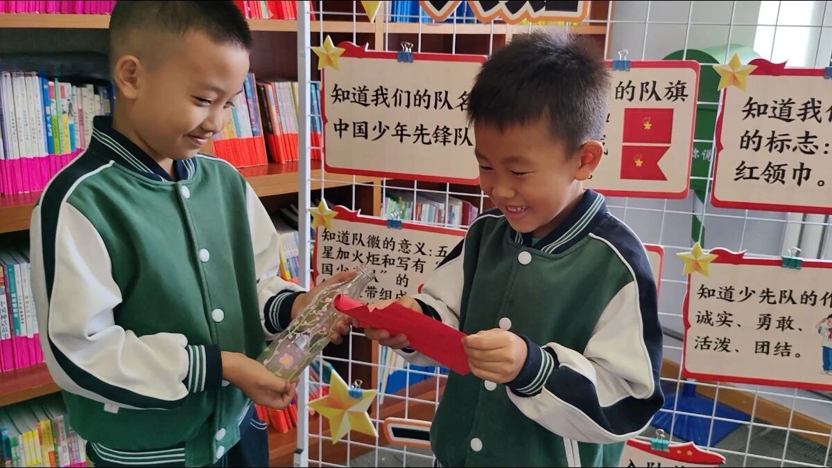 建队日,“红领巾之旅”开启,队前启蒙、闯关挑战、红色实践、入队仪式等活动成为孩子们成长的珍贵回忆。10月10日,孩子们前往绿园区少年宫参加综合实践活动,在体验和倾听中读懂少先队意义,让红色种子萌芽。当天,二年级老师对全体准队员进行队前教育,讲解“六知、六会、一做”,传递少先队知识与精神。