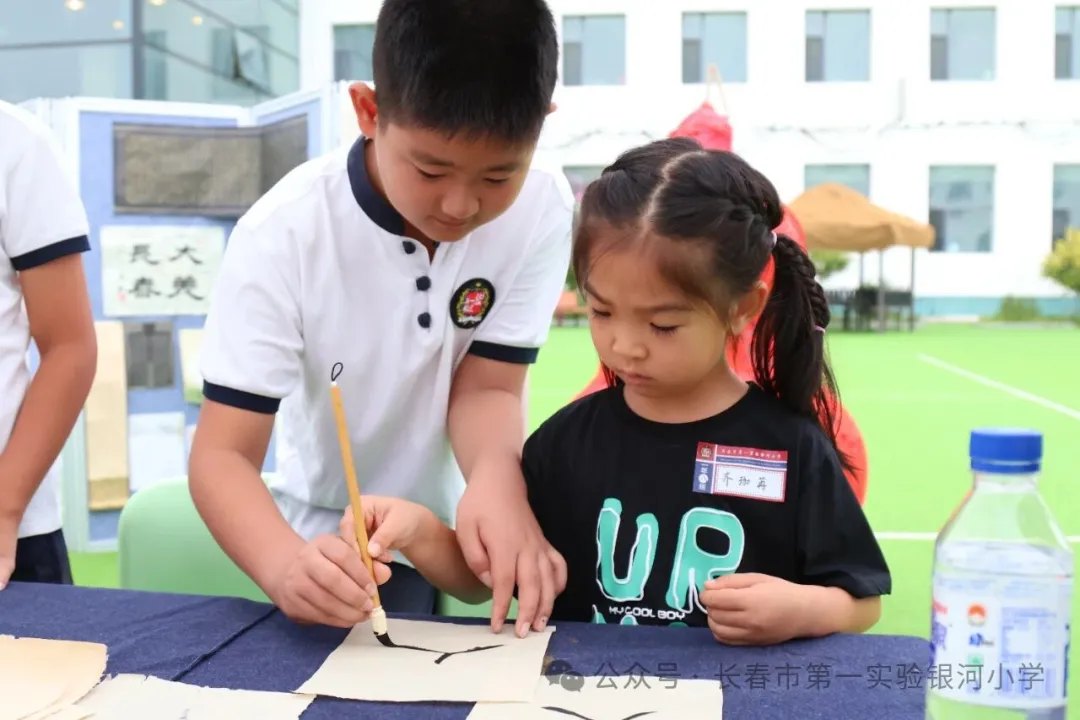 “追光之旅”以自由为底色,分六大板块:挑战自我追“勇气之光”,趣味挑战聚“活力之光”,领操台喊理想、击鼓明志寻“梦想之光”,书法启蒙植“智慧之光”,亲子投“致六年後的信”传“责任之光”,手作创作亮“创造之光”。