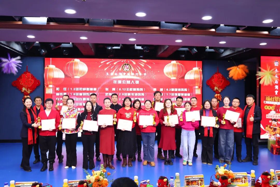 跨年晚会以视听盛宴拉开序幕。校长温情寄语,回顾师生成长并宣布学校自2026年1月1日起正式更名为"长春南湖实验银河小学",引发全场热烈掌声。晚会节目精彩纷呈:师生对唱《月亮翻过小山坡》《如愿》传递温情,亲子串烧《筝弦和鸣》《世界赠予我的》展现默契,电声乐队演绎《大东北我的家乡》点燃全场。川剧变脸与机器狗街舞同台亮相,传统与科技碰撞惊喜。21位公益家长获表彰,他们的默默付出汇聚成温暖力量。