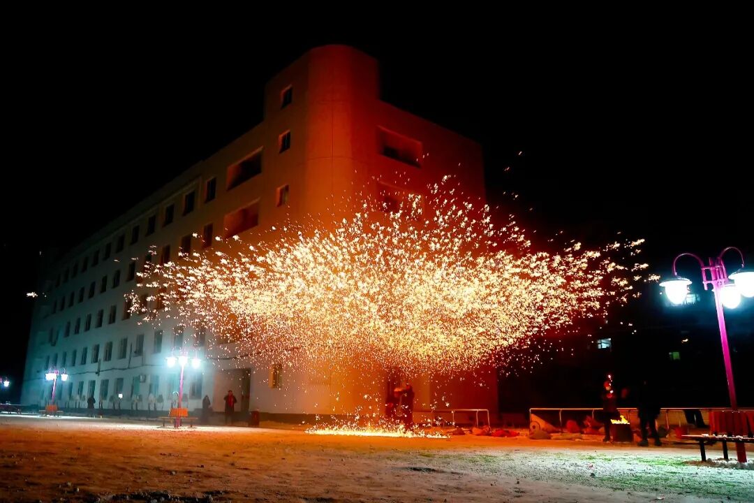 随着《你要跳舞吗》的合唱,晚会气氛推向高潮。跨年时刻,非遗"铁花流星"表演震撼全场,铁花如星河倾泻,寓意教育理想传承创新。璀璨焰火照亮夜空,为这场融合教育回望、文化传承与家校温情的盛会画上圆满句号,共同开启2026年的崭新征程。