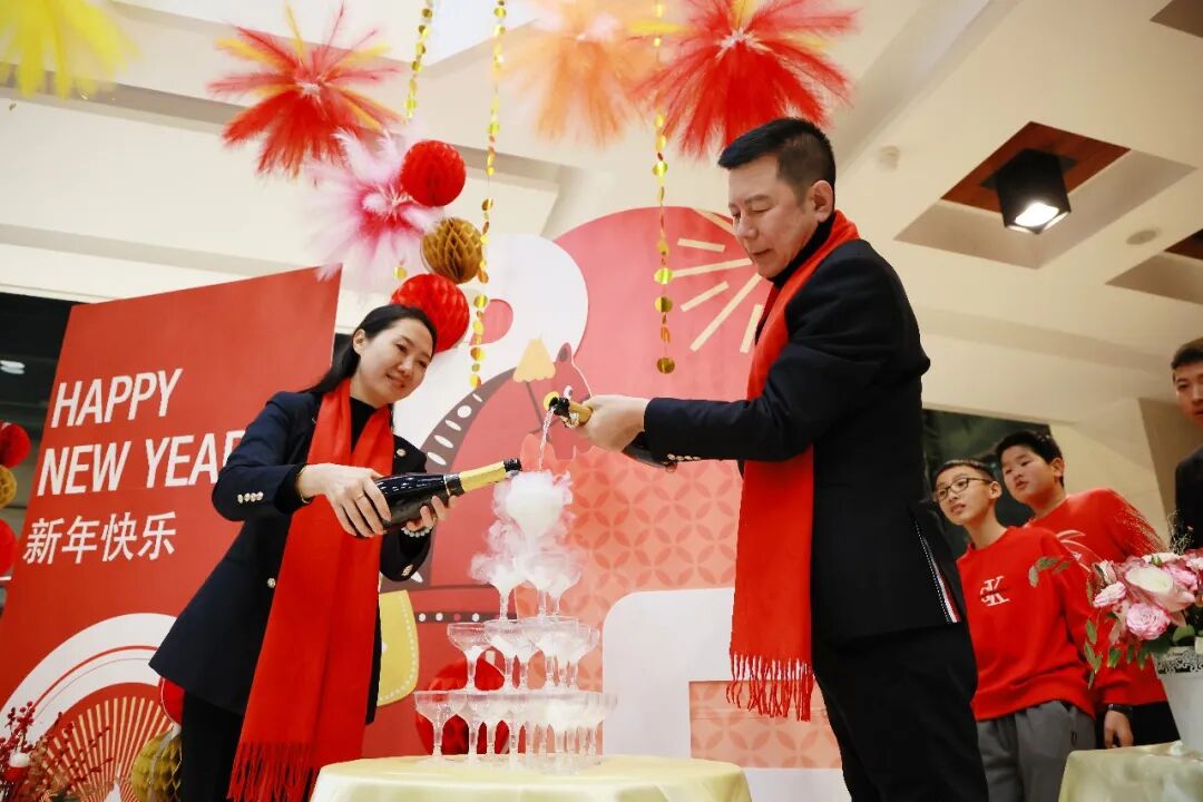 教育成果微展中,家长与孩子在图片、作品与光影间重温成长足迹。集团理事长与校长开启香槟,致敬教育硕果,共启嘉年华篇章。暖冬饺子坊里,家长、师生共包新年饺子,在烟火气中品味团圆滋味,传承节俗文化。